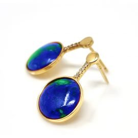19.2K Yellow Gold, Azurite and 0.02ct Diamonds.